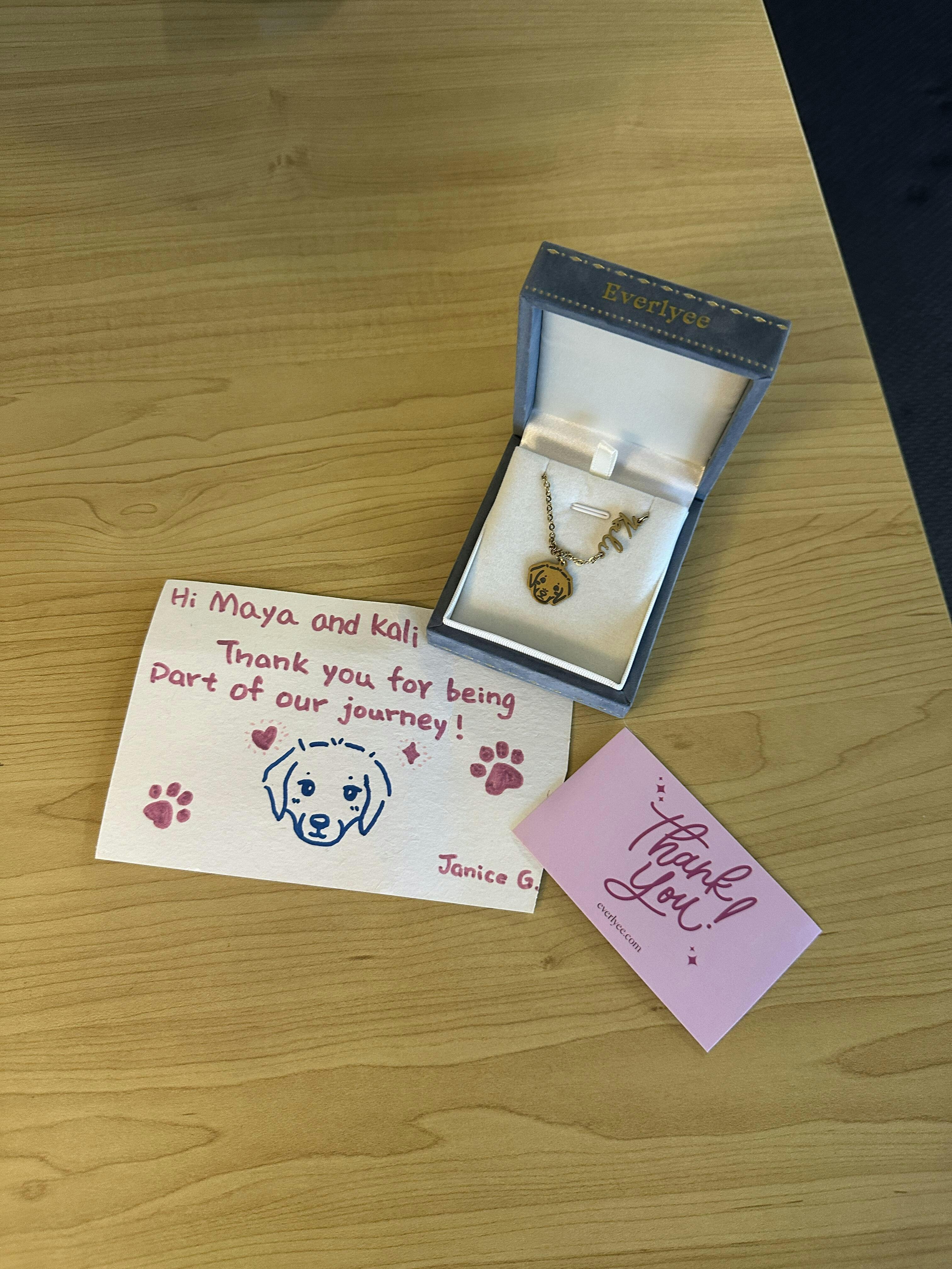 Absolutely love this! The custom face engraving of my dog is just too cute. I get so many compliments every time I wear it. It’s the perfect travel jewellery for when I’m away from my pup. Shipping was fast, customer service was super attentive, and the packaging was beautifully done. Such a special and thoughtful gift!