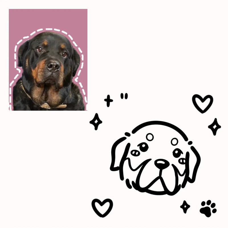 We will design a cartoon portrait of your furry friend based on the traits shown in the photo